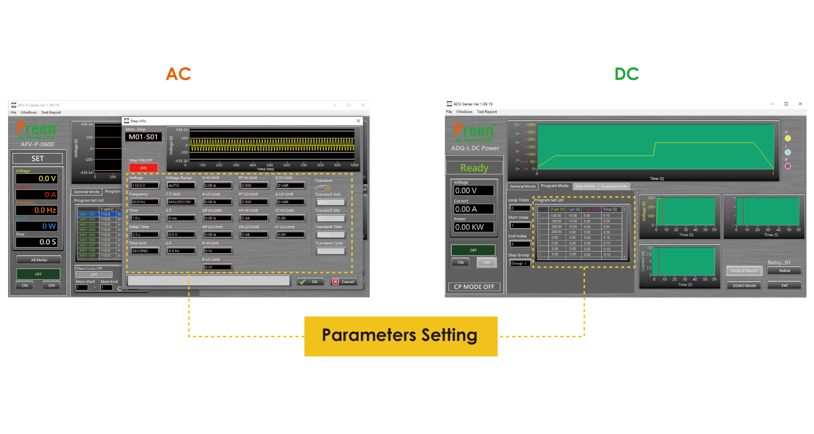 只需簡易設(shè)置各項參數(shù),PreenProgram將自動生成對應(yīng)的波形模擬,透過準確的波形,使用者能快速得知測試項目是否達到預(yù)期需求。