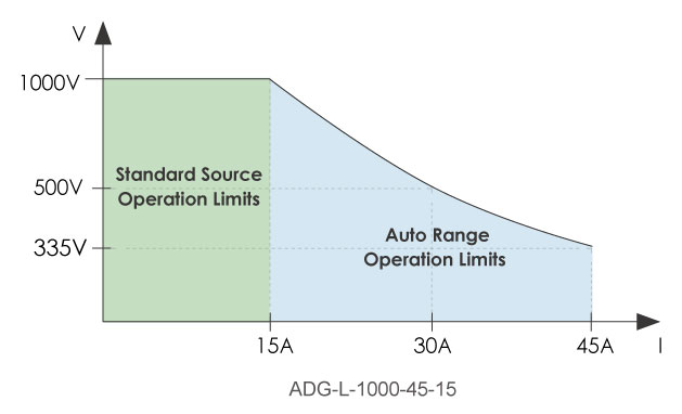 相較于一般的直流電源,寬量程 (Auto Range) 的直流電源具備更寬廣的電壓和電流操作范圍,如圖所示,一般的直流電源在所有的電壓段只能提供相同的最大電流,而寬量程的直流電源則能在較低壓輸出時(shí),提供較高的最大電流。 ADG-L 系列中的多個(gè)機(jī)型已具備寬量程之功能,方便使用者能用一臺(tái)直流電源,滿足高壓低電流及低壓高電流的應(yīng)用,大幅節(jié)省成本及空間。