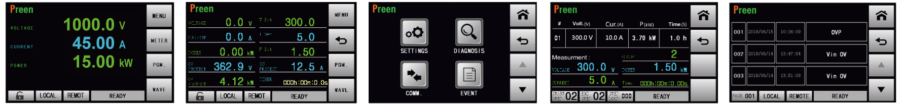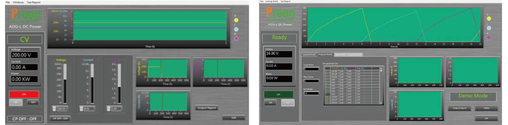 ADG-L采用大型5吋觸摸屏以及飛梭旋鈕,各項(xiàng)數(shù)據(jù)及狀態(tài)一目了然,搭配清晰簡(jiǎn)潔的色彩及配置,快速掌握電壓、電流、功率等資訊。另能在本機(jī)上完成復(fù)雜的程序設(shè)置,無需透過遠(yuǎn)端控制軟件或額外編寫程式,直覺性的人機(jī)操作介面,讓使用者輕松上手完成設(shè)定。